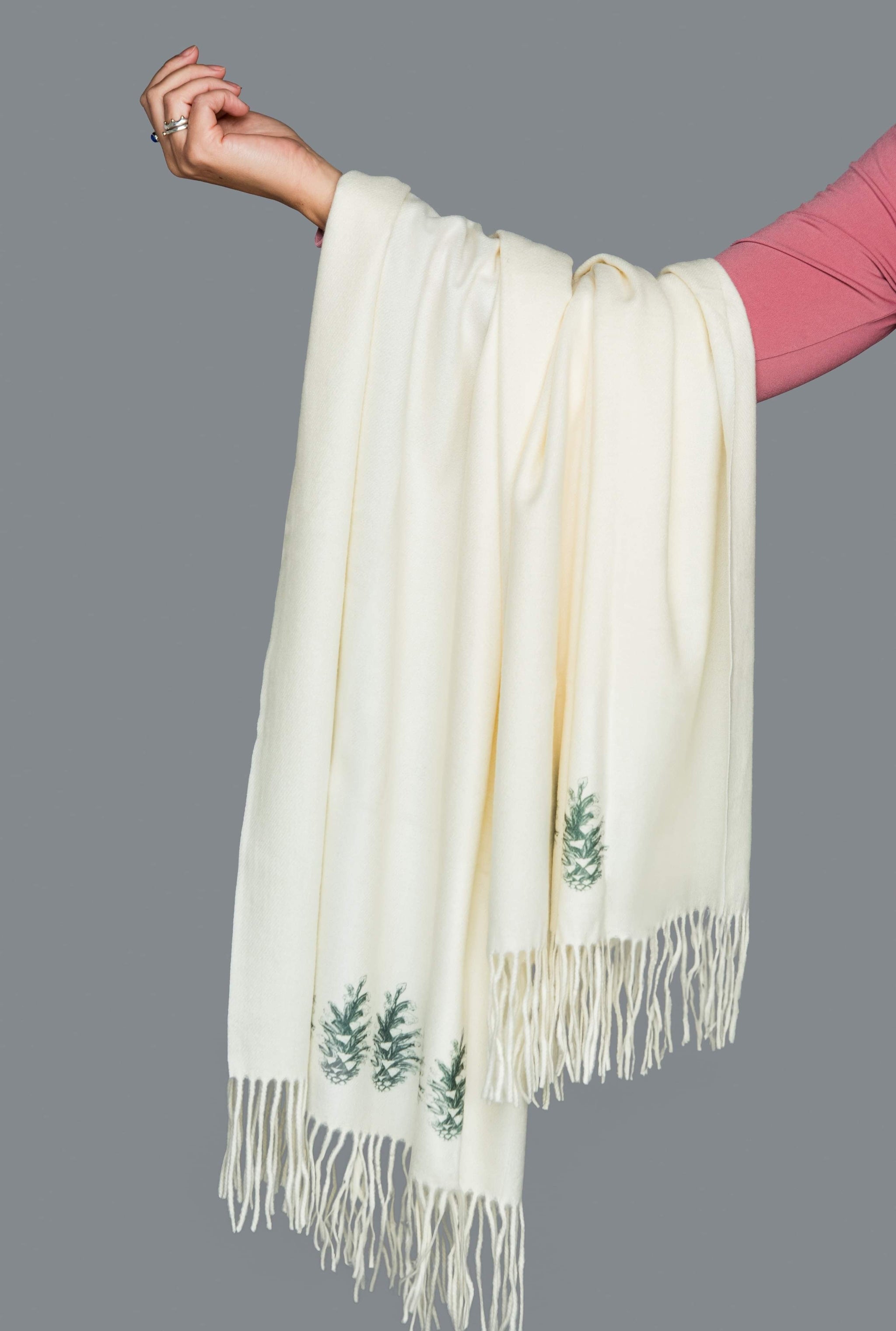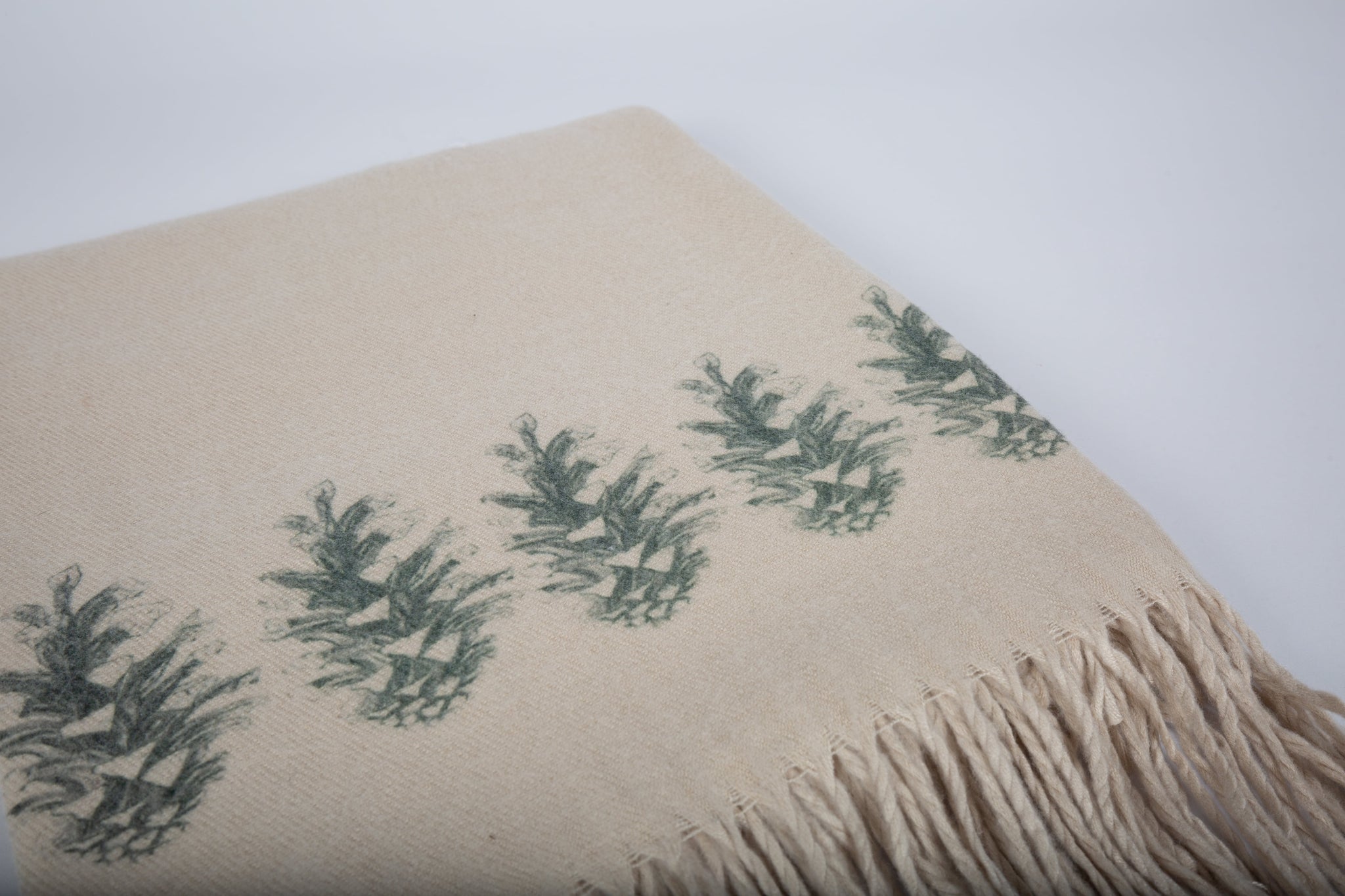 Cashmere Feel Luxury Scarf Handprinted With Pine Cones