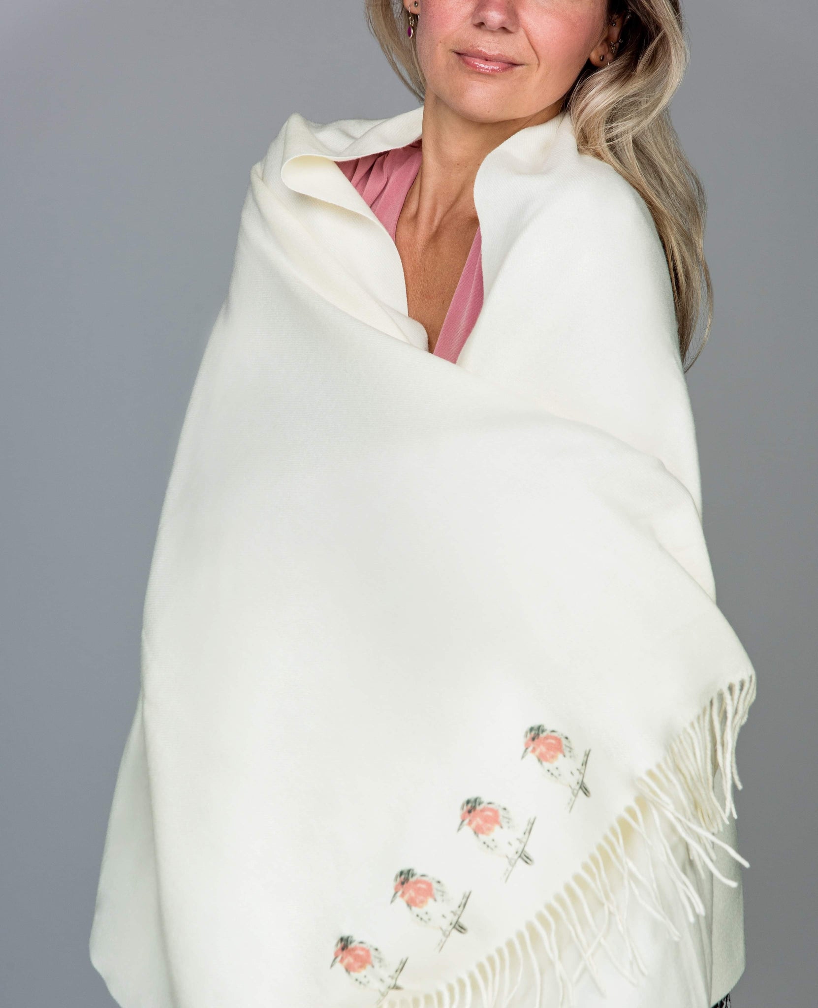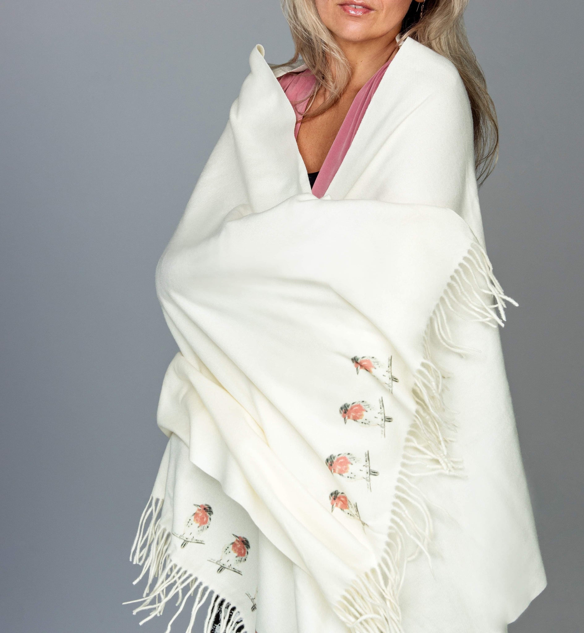 Cashmere Feel Luxury Scarf Handprinted With Robins