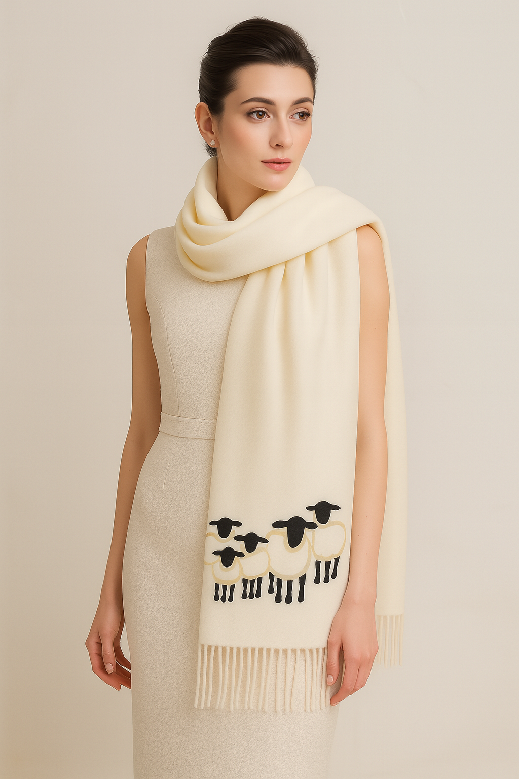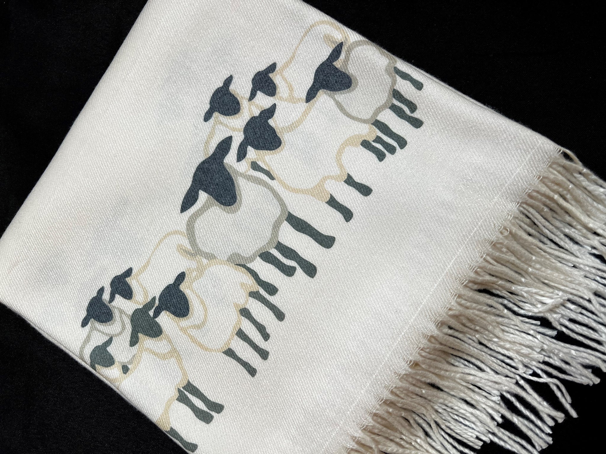 Cashmere Feel Luxury Scarf Handprinted With Sheep