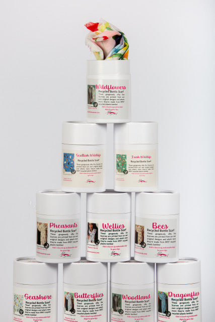 These incredibly soft and silky scarves are made from Recycled PET Plastic Bottles.  Fully sustainable and recyclable they are uniquely printed with our own original designs.