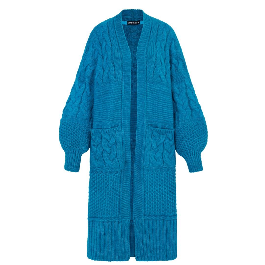 Say hello to Alex – your go-to oversized cardigan with a bold twist. Crafted in a rich teal hue and full of textural detail, Alex features chunky cables, deep patch pockets and an easy open front. The silhouette is very relaxed and slouchy, making it perfect for layering across seasons.