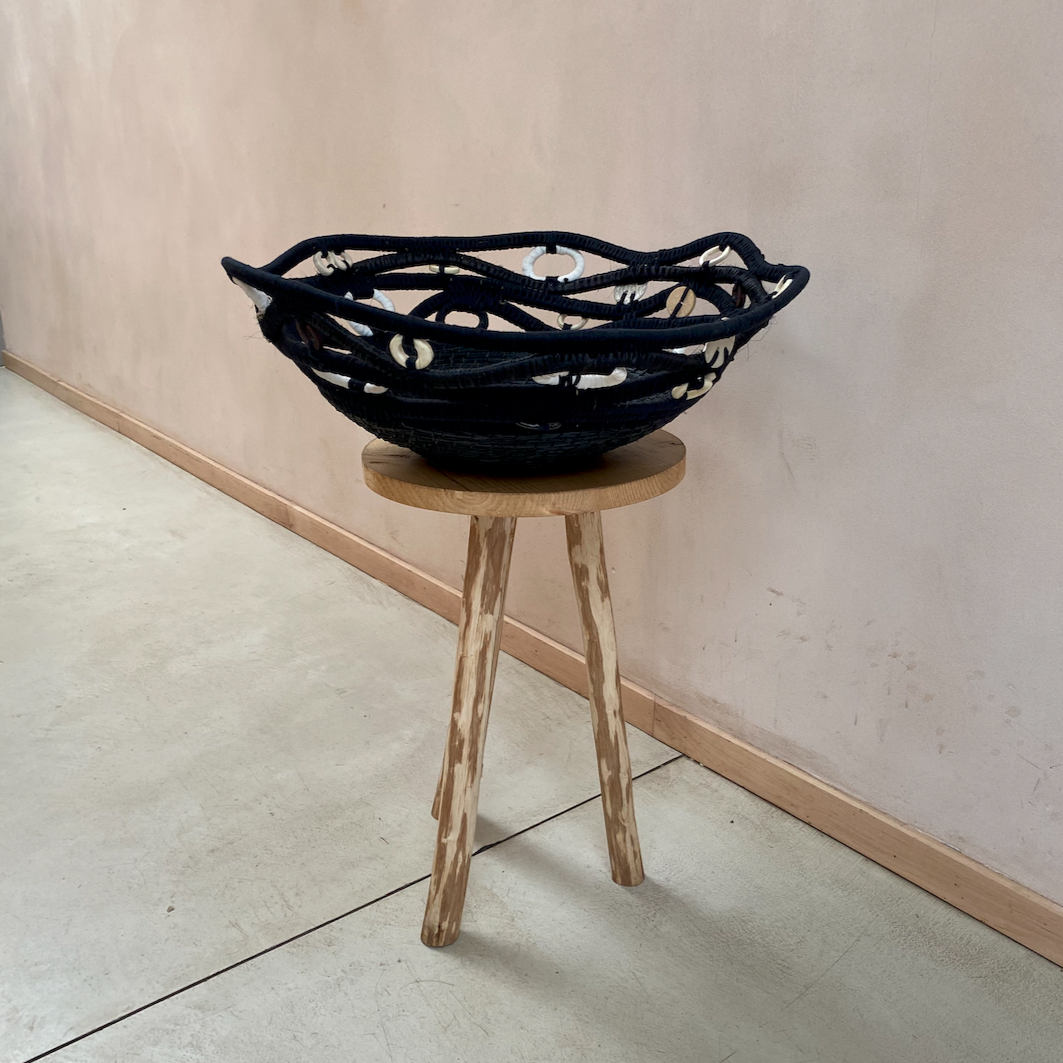 Inspired by the life of Siphiwe, the Lace Basket from the Song of the Weaver collection tells a deeply personal story. After leaving school due to pregnancy, Siphiwe began weaving to support her family. Despite hardships, including her husband’s absence for four years and the loss of their cattle, she rebuilt her life with income from Gone Rural. The basket’s design elements—such as the bone representing her strength, the goat skull symbolizing the ritual upon her husband’s return, and the metal disc reflecting his bicycle visits—capture the layers of her journey through both fertile and challenging times.