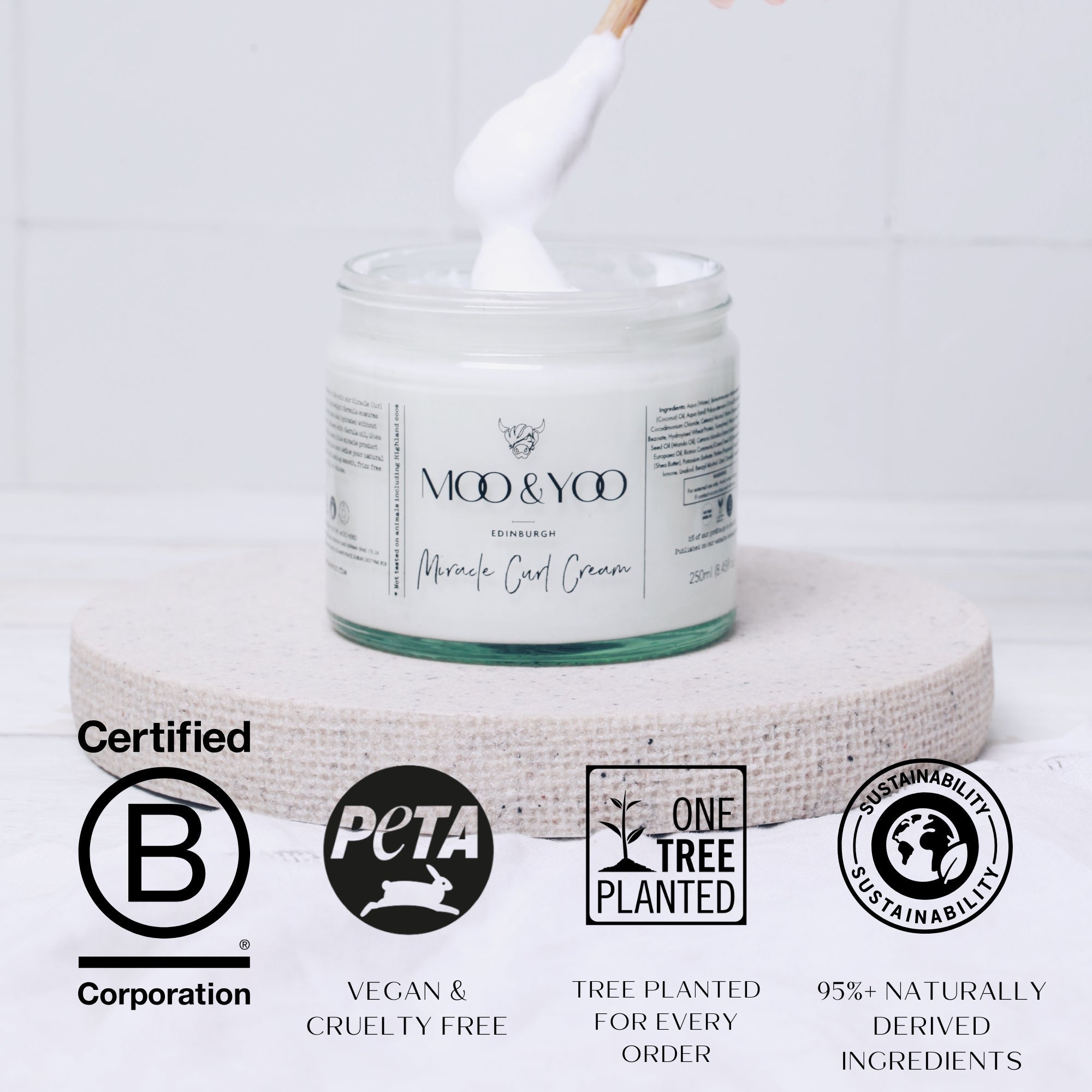Our Miracle curl cream enhances, creates volume and bounce and at the same time protects from humidity and environmental stresses. It moisturises and conditions your curls – and keeps all that gentle hydration locked in. It helps with definition and keeps hair soft, shiny and frizz free.