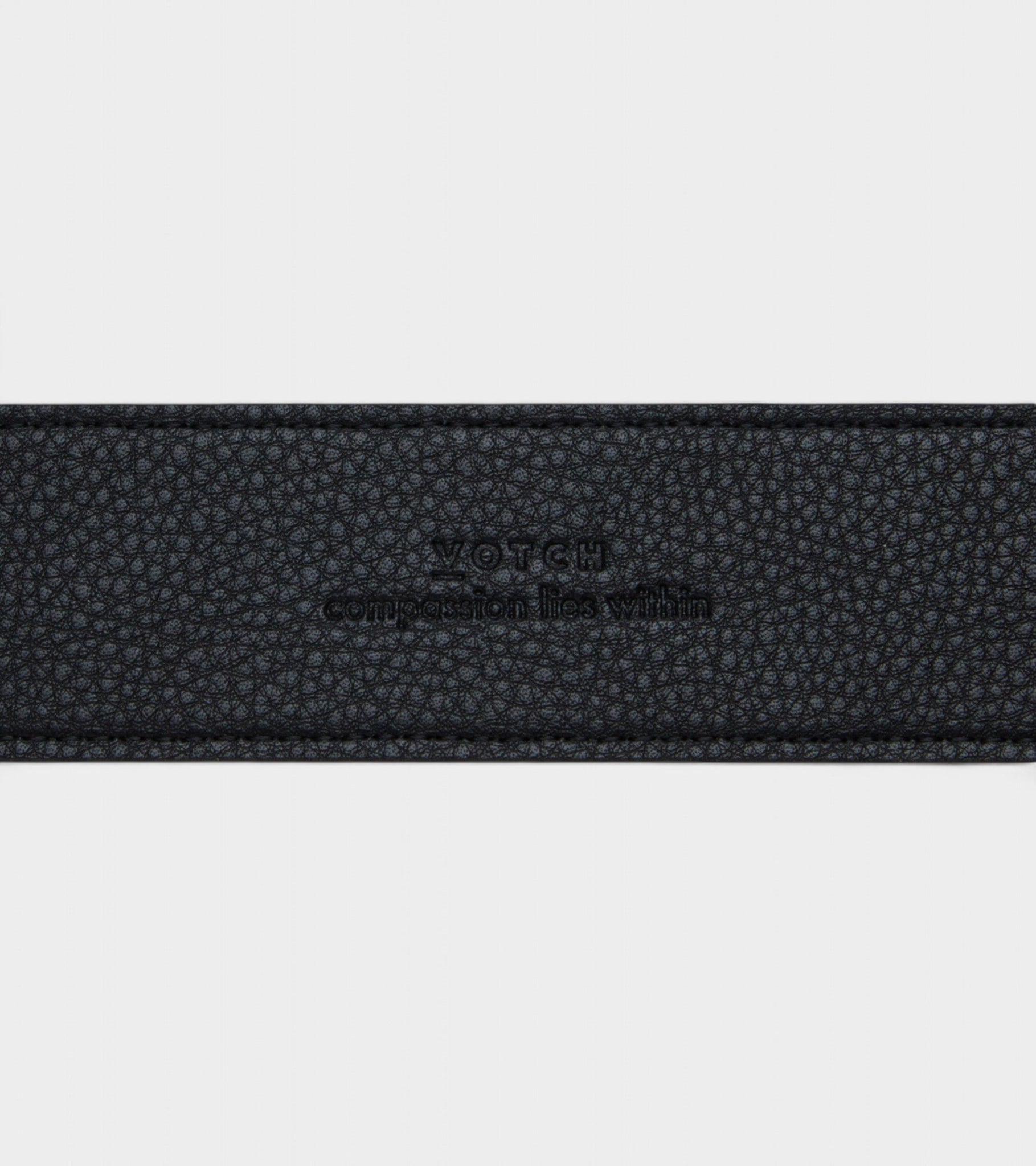 On the underside, "Votch" and "compassion lies within" embossing highlight the belt’s cruelty-free and conscious craftsmanship. Perfect for everyday wear or formal occasions, the Marley Belt effortlessly combines durability, style, and sustainability.