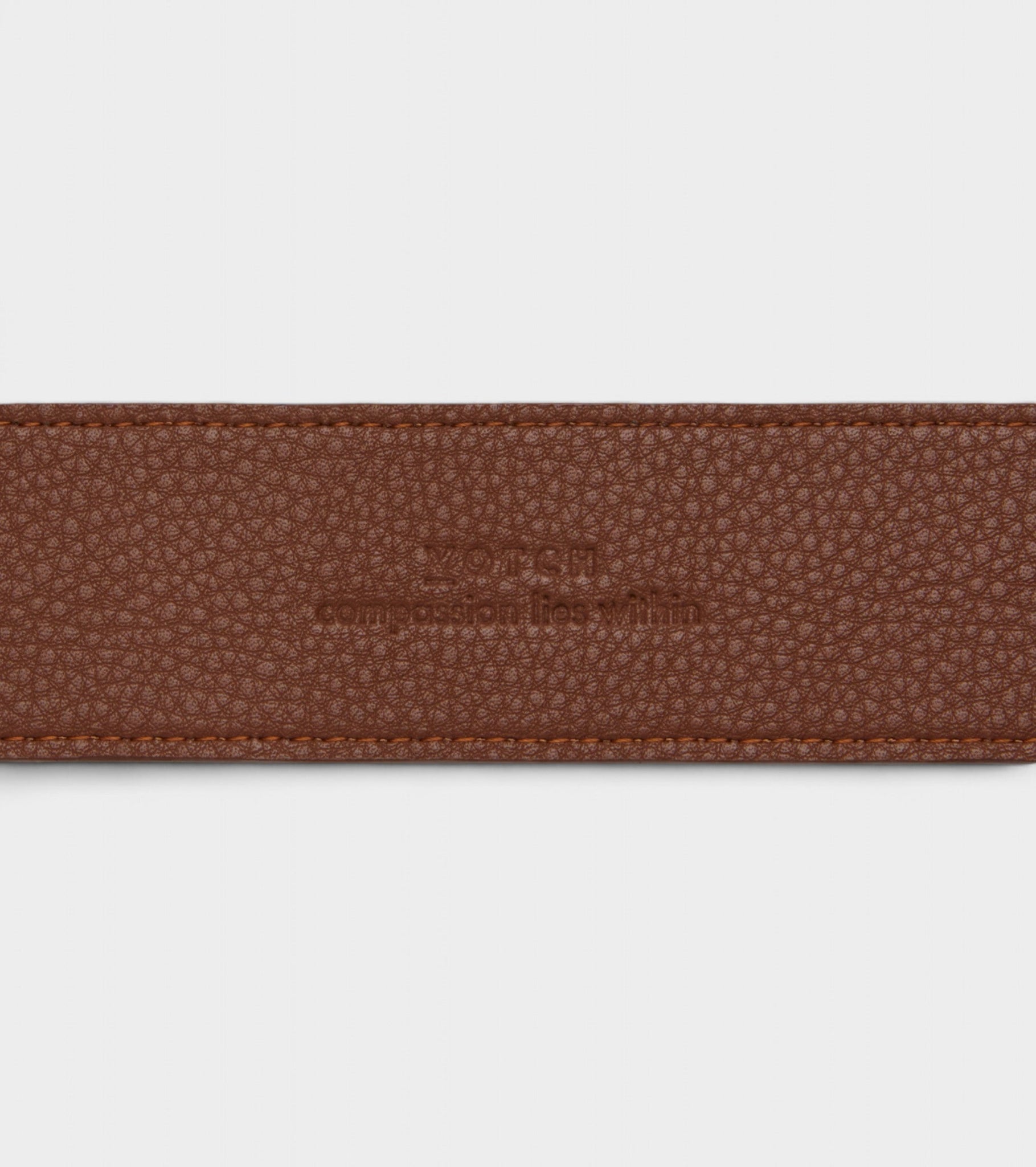 On the underside, "Votch" and "compassion lies within" embossing highlight the belt’s cruelty-free and conscious craftsmanship. Perfect for everyday wear or formal occasions, the Marley Belt effortlessly combines durability, style, and sustainability.