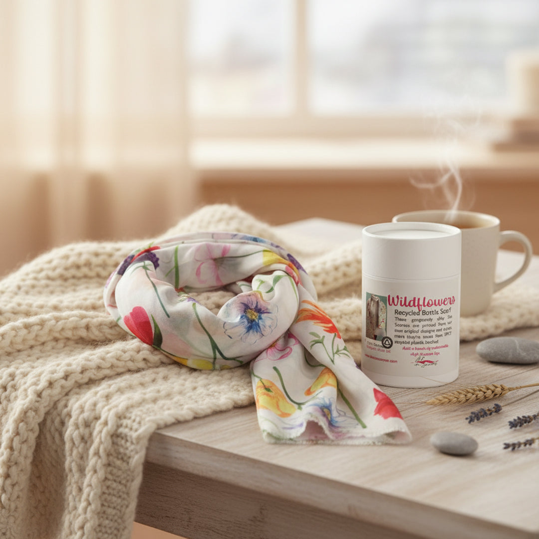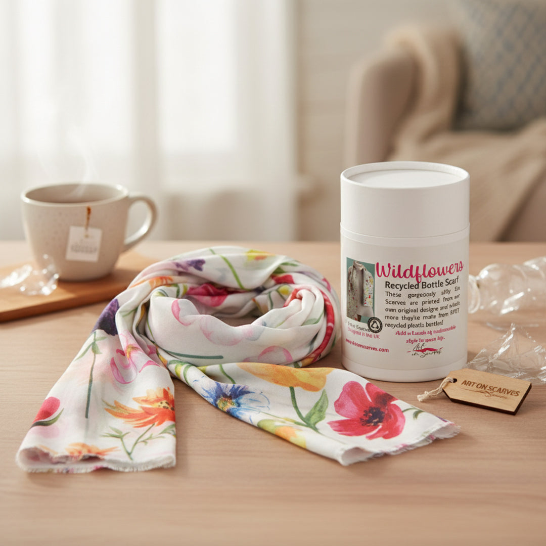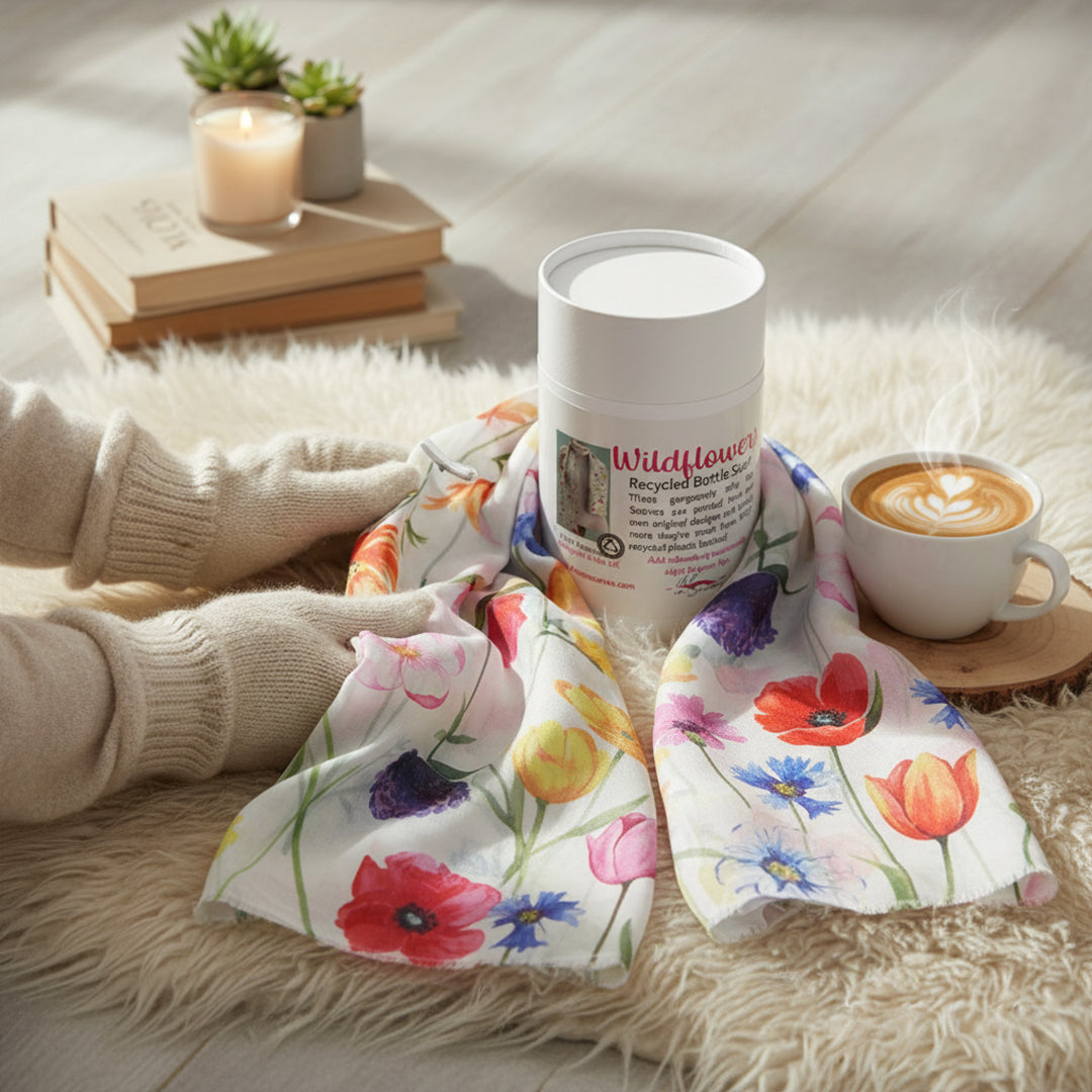 PRODUCT DESCRIPTION: Recycled Bottle Scarf - Wildflowers by Art on Scarves