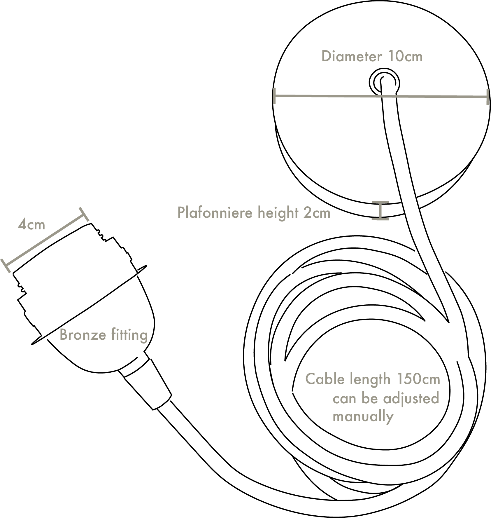 ◦ Supplied with complete European CE certified real bronze fitting, black woven power cable, and matte black plafonniere.