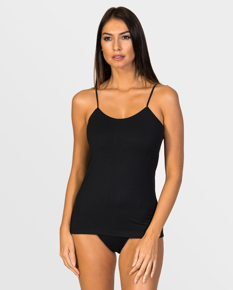 Meet the Afrodita Spaghetti Top by ZD Zero Defects, crafted from ultra-soft soy fiber (soy yarn) with natural antibacterial, breathable, and moisturizing properties. This womens spaghetti top works as a layering piece or standalone tank, eliminating moisture, keeping skin fresh and comfortable. Ethically made in Spain.