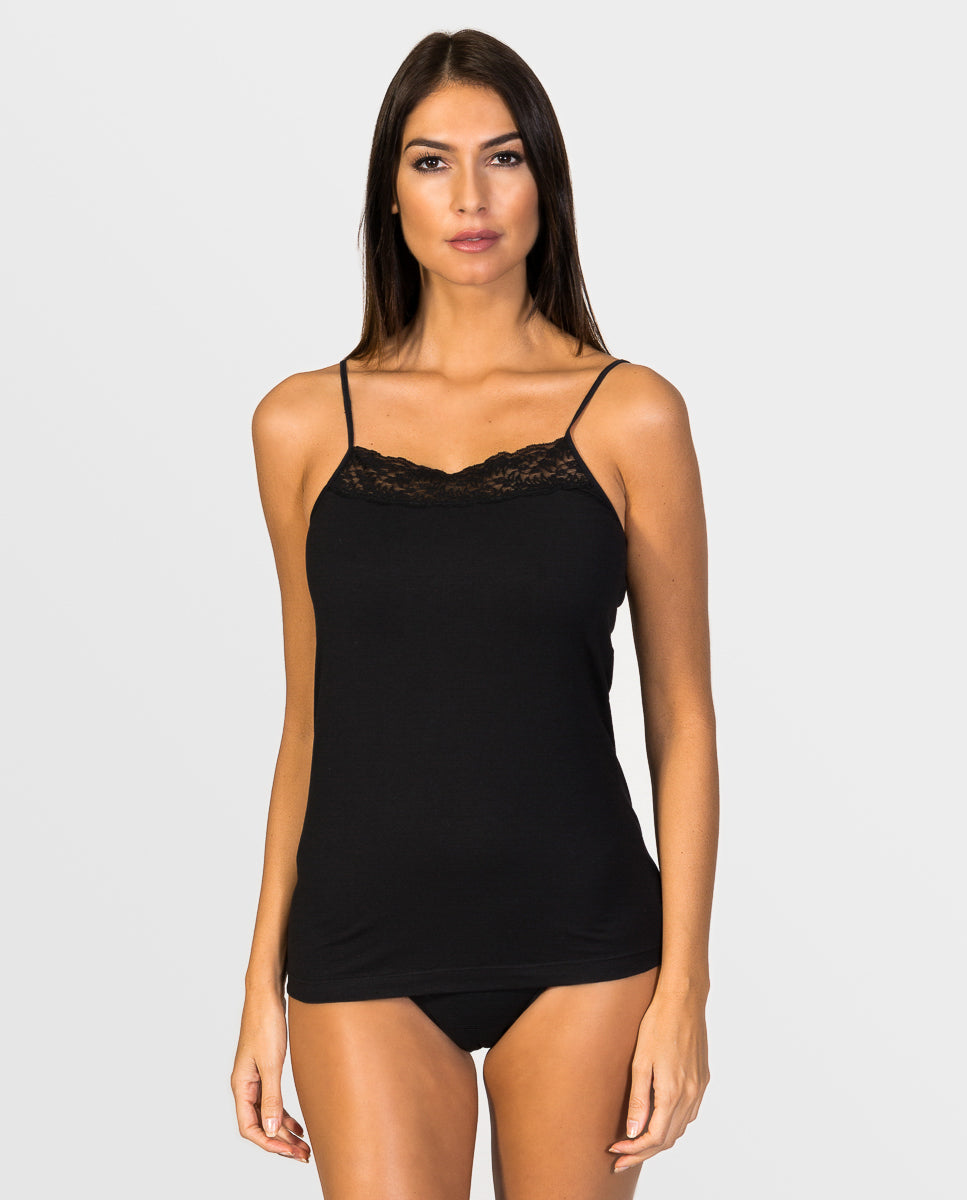 Spaghetti Top Lace Straight Neck Soy Yarn
