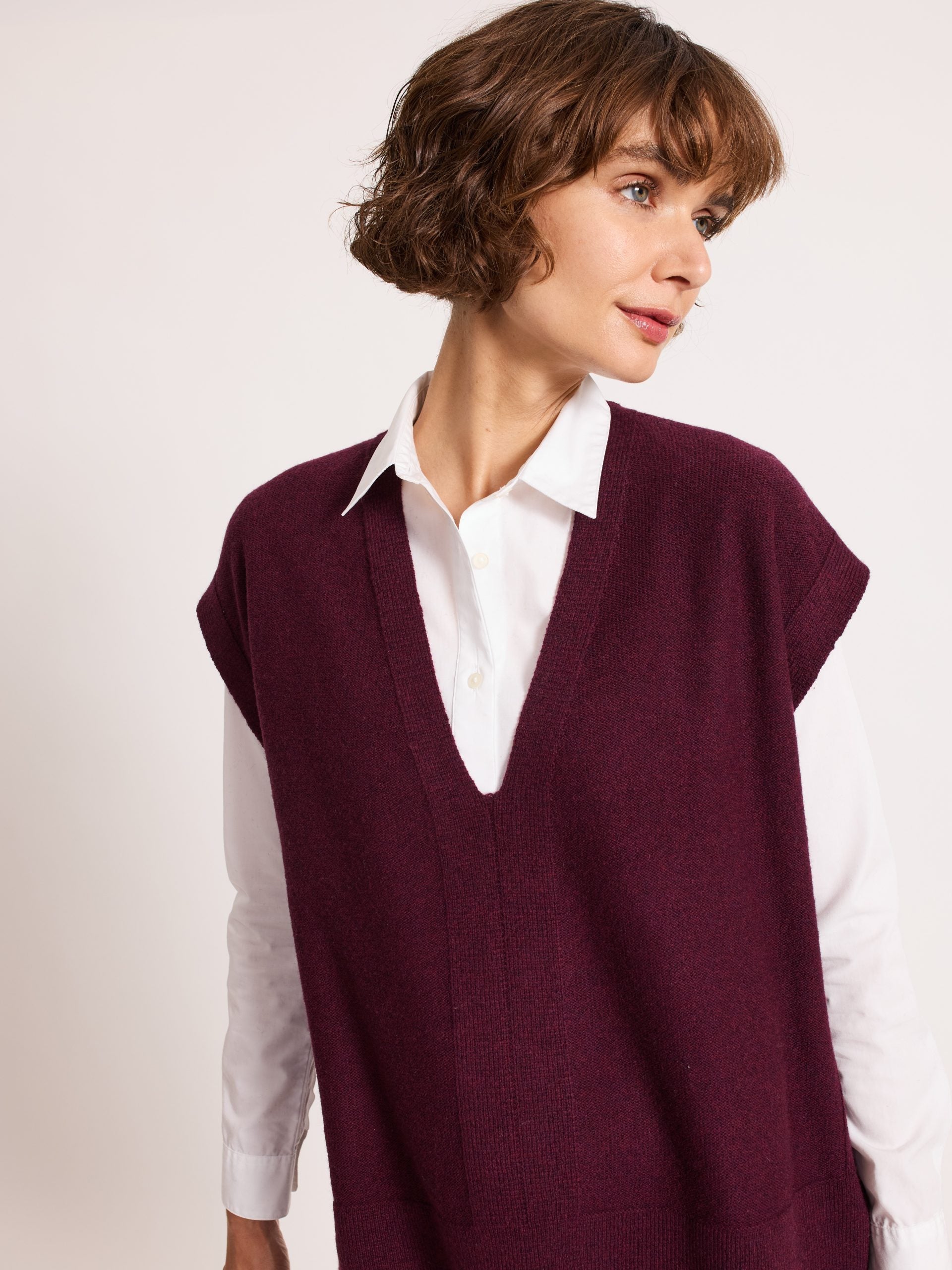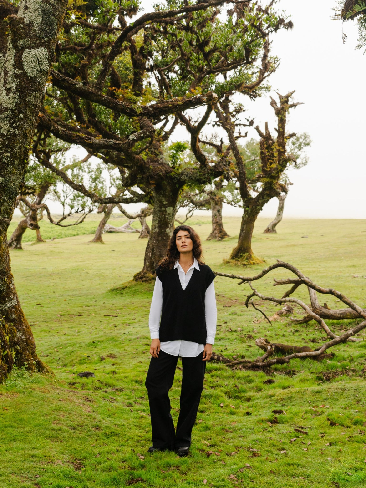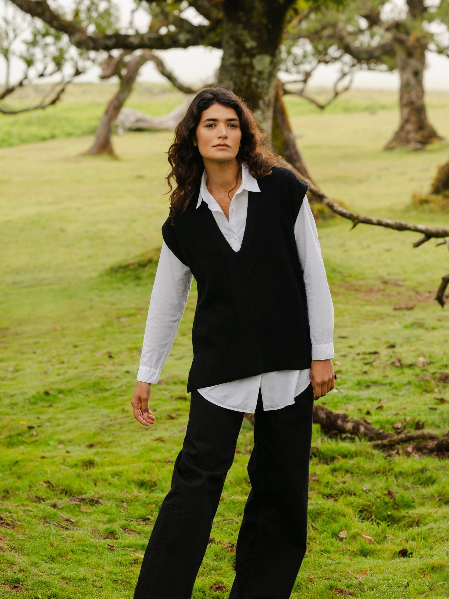 Dropped shoulders, a deep V-neck, and an elongated back create a modern, architectural silhouette that flatters every body shape. Whether styled over crisp shirting or a relaxed tee, it’s the perfect blend of structure and softness for the colder months.
