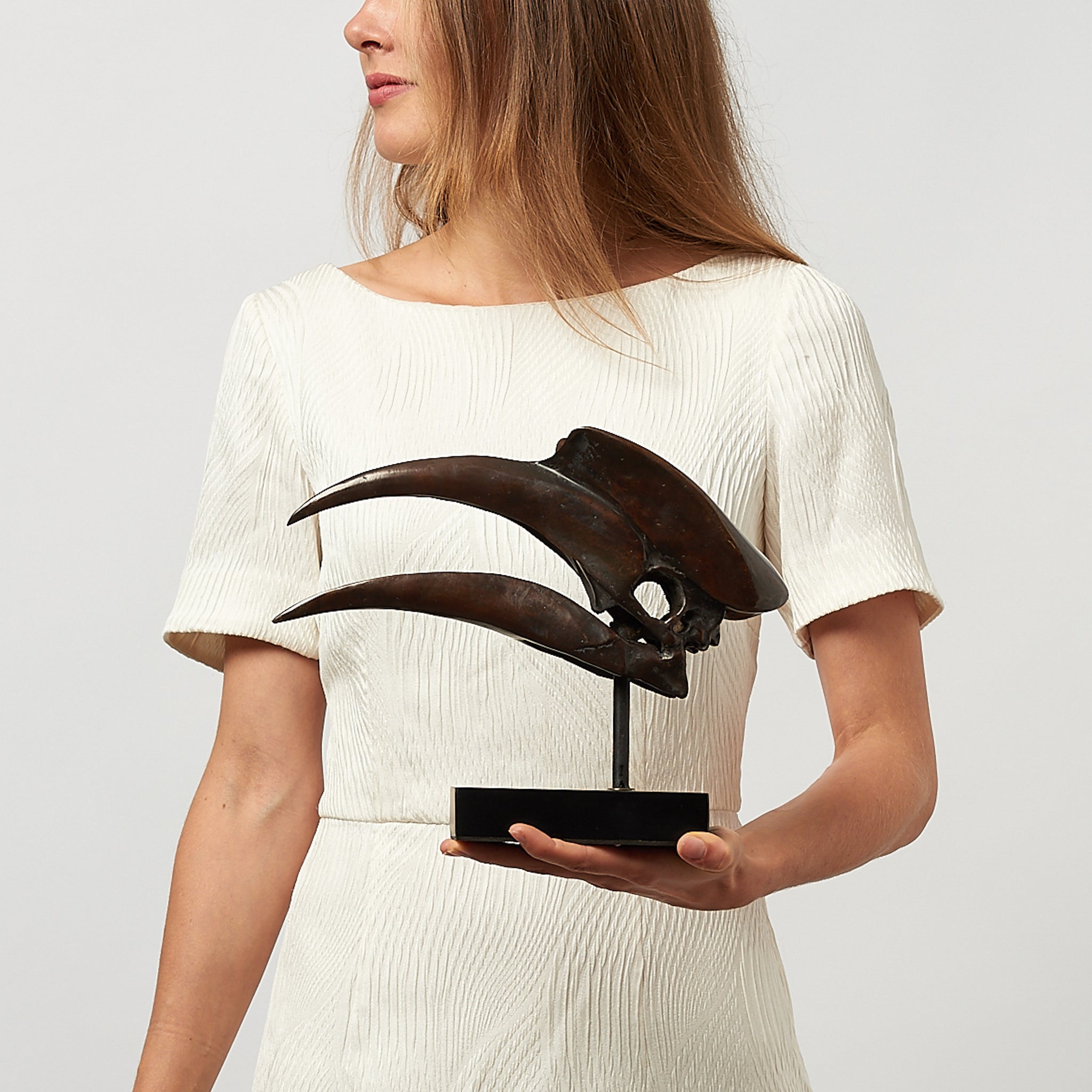 This is a bronze sculpture of a Great Hornbill. This sculpture is part of our Eternity of Remarkable Species collection where we capture the astonishing beauty of endangered animals in a static state. Well aware of the direct impact of mankind on the environment, we create respectful alternatives to the authentic vulnerable species, such as the Great Hornbill. Just as enchanting, less of an impact.