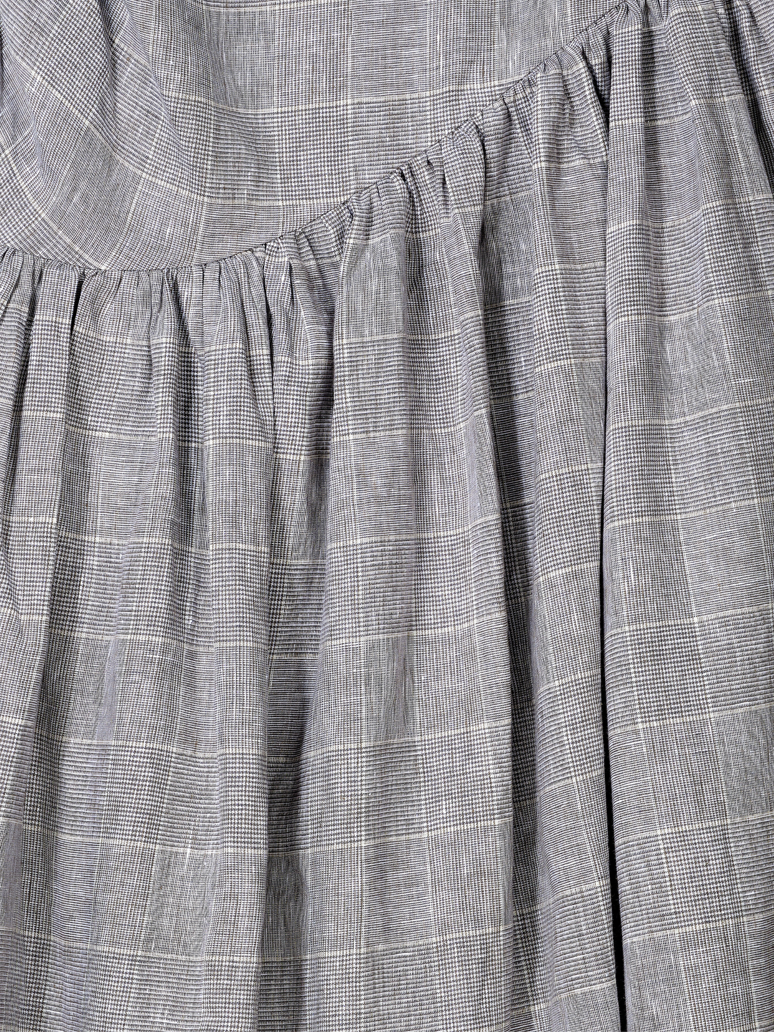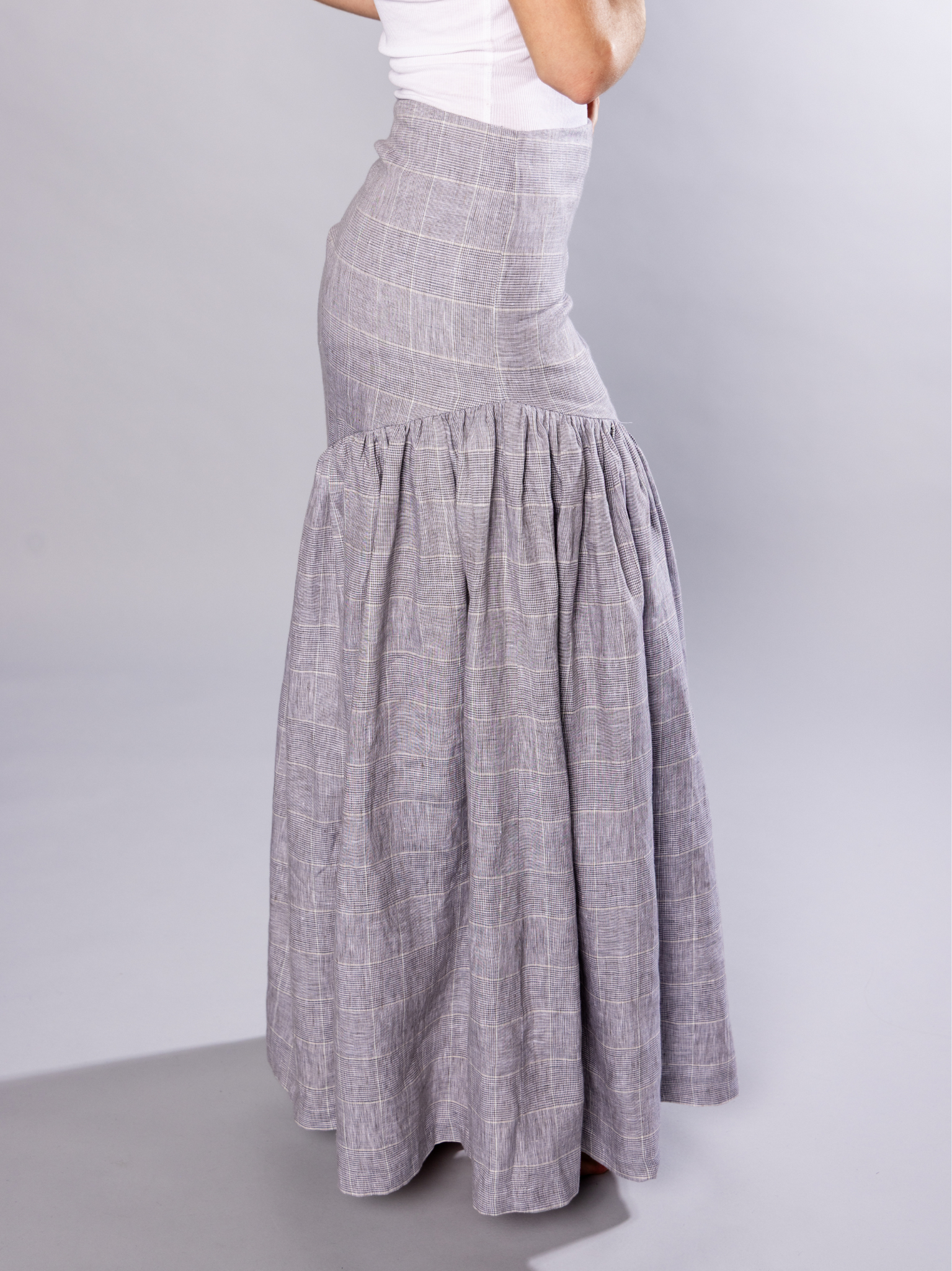 The Hilda Gathered Maxi Skirt isn’t just a skirt, it’s a celebration. Made from dead-stock fabric lined in a subtle grey check (yes, the same as the Michelle Dress), this material was once destined for suits. But let’s face it, who wants a suit anymore? It’s much better in a skirt. And oh, what a skirt this is.