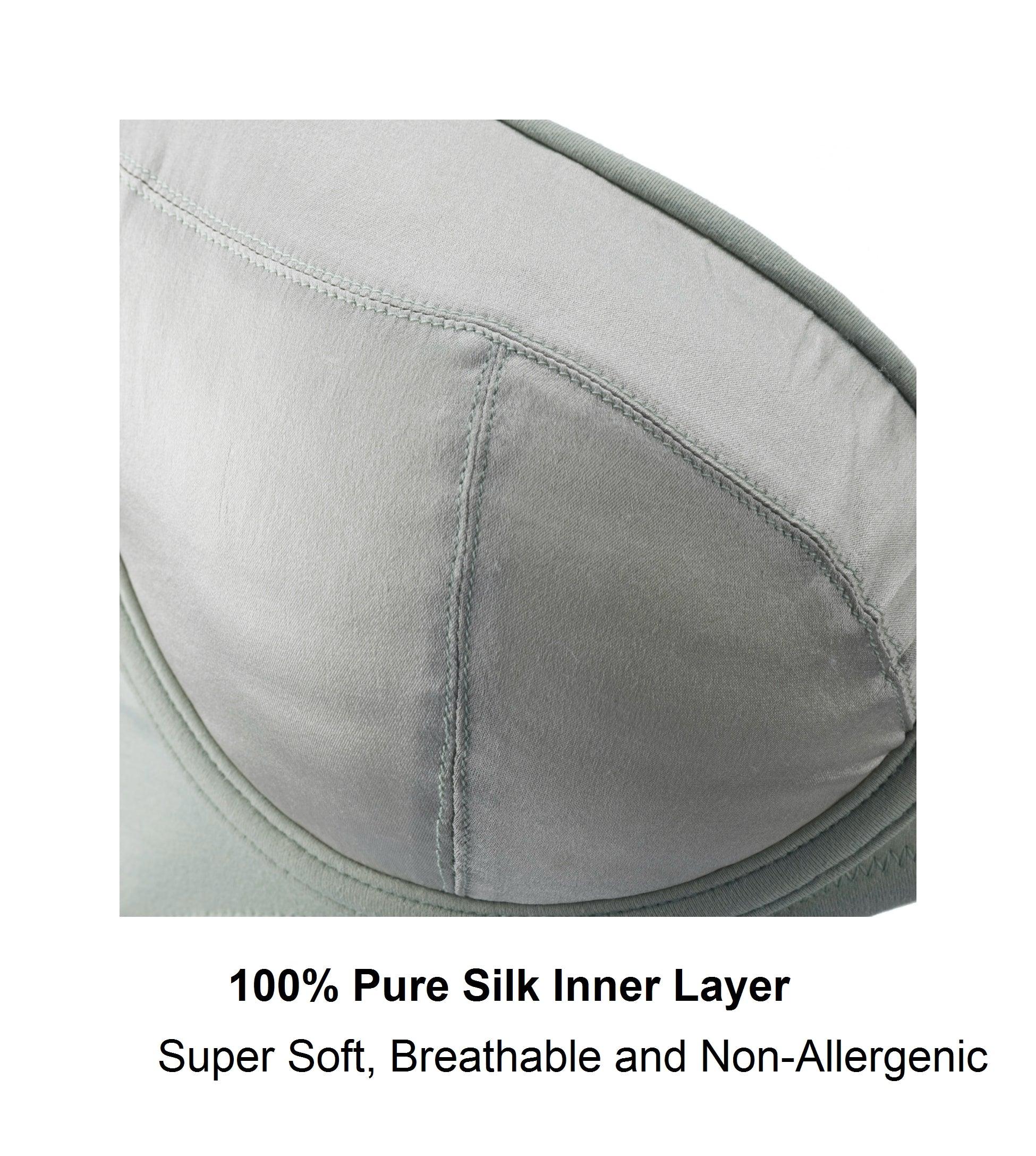 • Underwires are encased in a silk casing, no more chafing or itching.